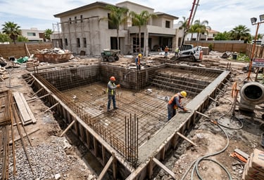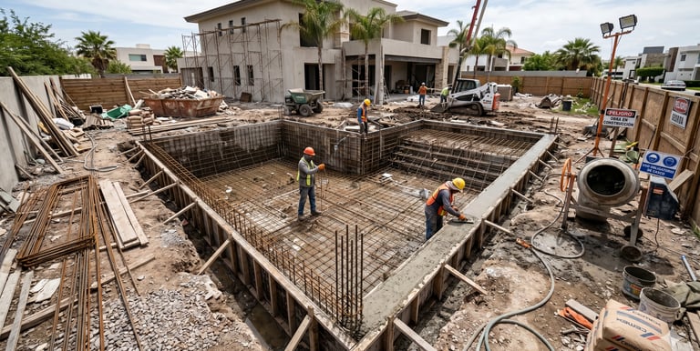 Materiales de alta calidad y técnicas precisas para piscinas y jardines duraderos.